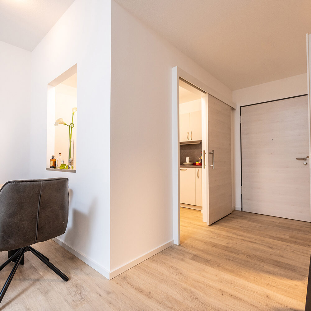 Unsere 43 hochwertigen Seniorenwohnungen bieten modernen Wohnkomfort in durchdachter Architektur. Alle Einheiten sind barrierefrei, hell und mit Balkon oder Terrasse ausgestattet – ideal für Einzelpersonen oder Paare.